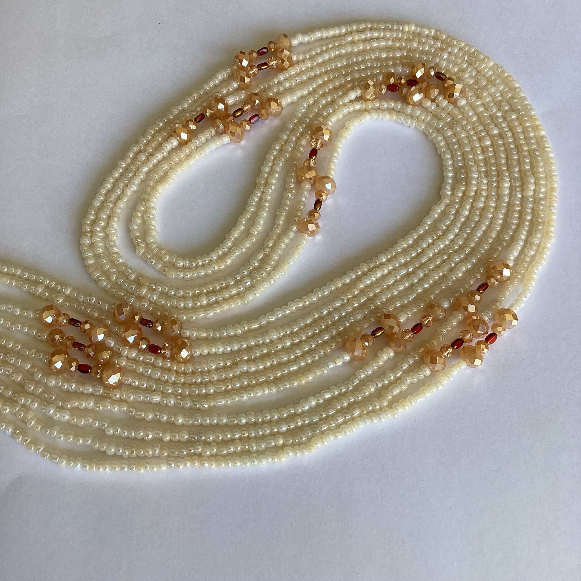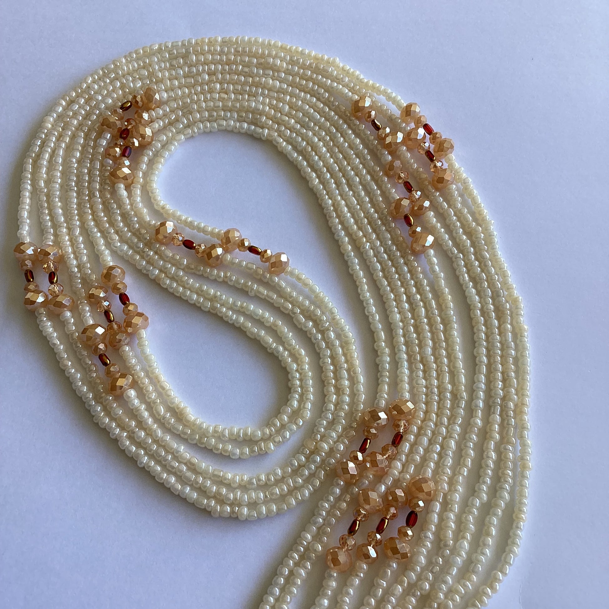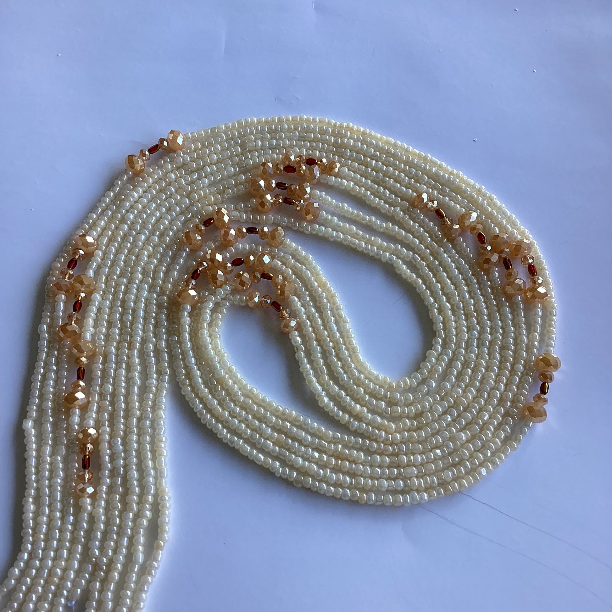Pattern: Each waist beads stand is uniquely handcrafted crafted. The beads are the same but the design may vary in each pattern.